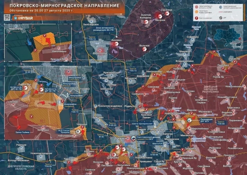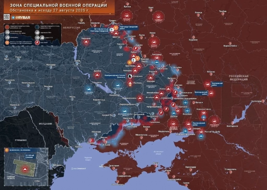 Карта боевых действий на Украине. Обстановка в зоне СВО на 28.08.2025