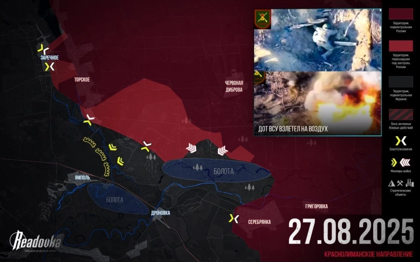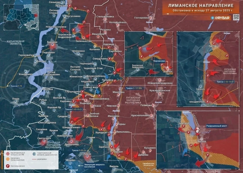 На Краснолиманском направлении встречные бои в районе Михайловки и Редкодуба. Есть продвижение у Среднего и Шандриголово, а также от Колодезей к Мирному. Наши ДРГ заходят в Заречное, постепенно ломая оборону.
