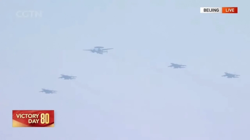 Наибольший интерес представляла смешанная эскадрилья истребителей. В неё вошли хорошо известные самолёты J-16, а также современные J-20 в одно- и двухместной версиях. Учебно-боевой истребитель J-20S присутствовал на параде первый раз. Кроме того, в парадный строй впервые включили перспективный истребитель J-35. Все новые образцы такой техники поступают на вооружение ВВС.