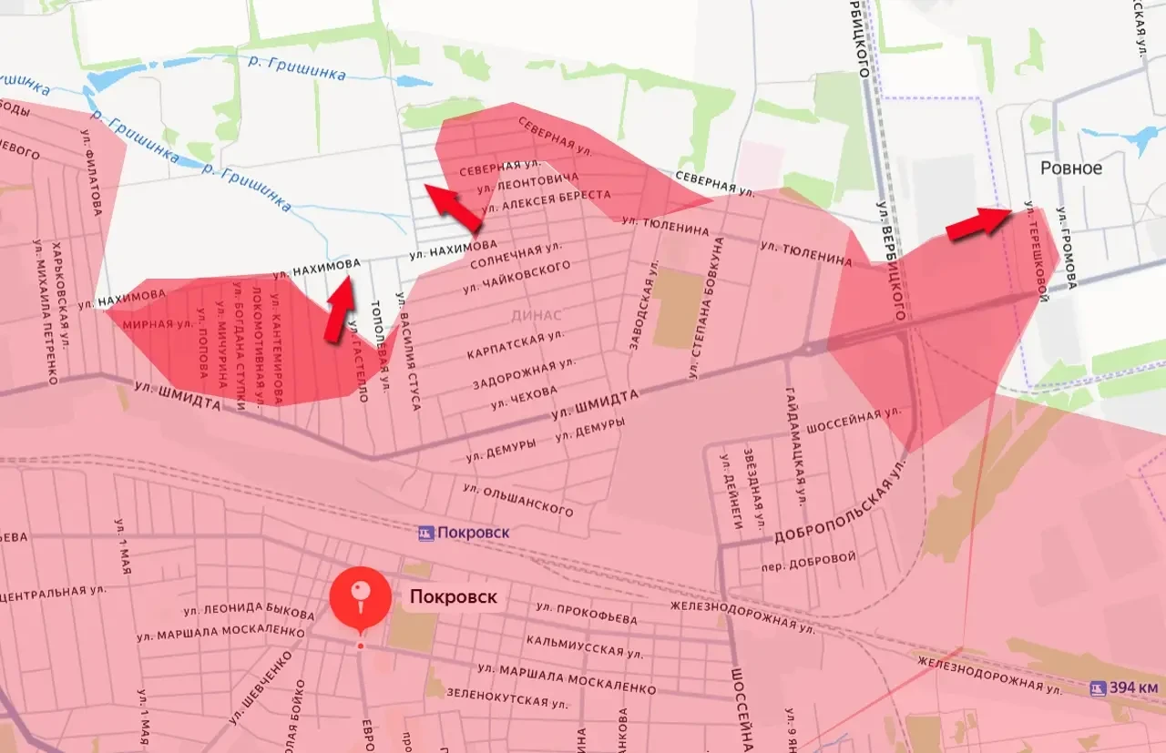 Этот успех означает полное падение оставшейся линии обороны противника на севере Покровска (Красноармейска) и выход ВС РФ за северо-восточную окраину города – восточнее железной дороги, которая, по сути, черту города на этом участке и определяет.