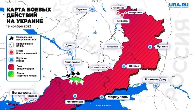 Карта боевых действий в зоне СВО на Украине по состоянию на 13:00 мск 19.11.2023