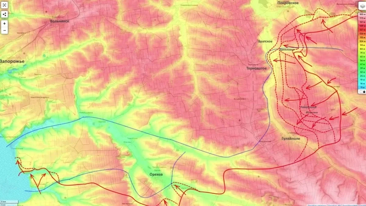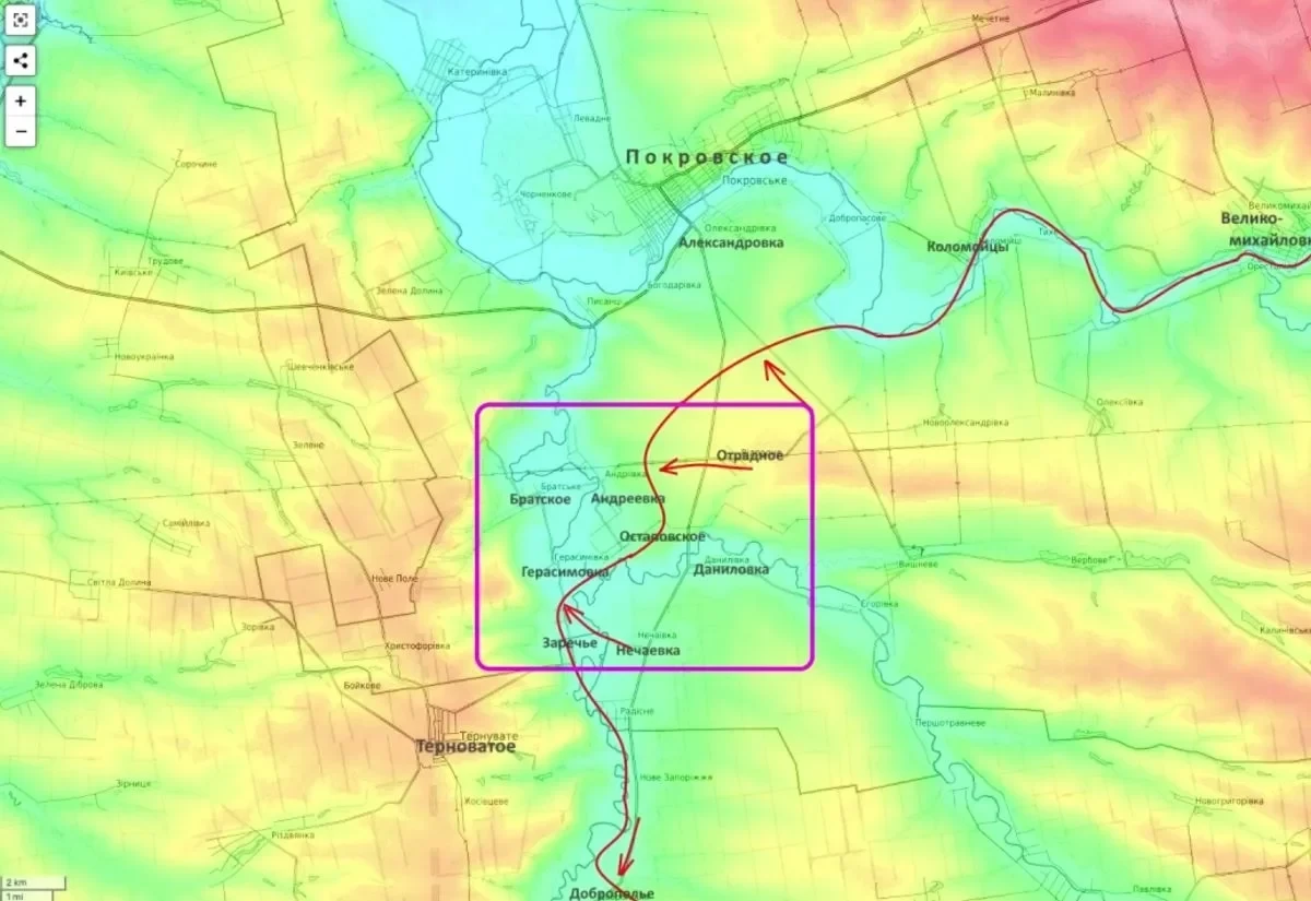 Основные события разворачиваются в районе Терноватого. Российские войска начали штурм населенных пунктов Остаповское и Герасимовка, а накануне заняли значительную часть Заречного, создав первый плацдарм на западном берегу реки Гайчур. Контроль над связкой Герасимовка — Остаповское — Андреевка позволит выйти к Братскому — ключевому узлу обороны. Потеря Братского для ВСУ будет означать обрушение всей оборонительной линии по реке Гайчур и откроет путь к рассечению группировки врага вплоть до Орехова.