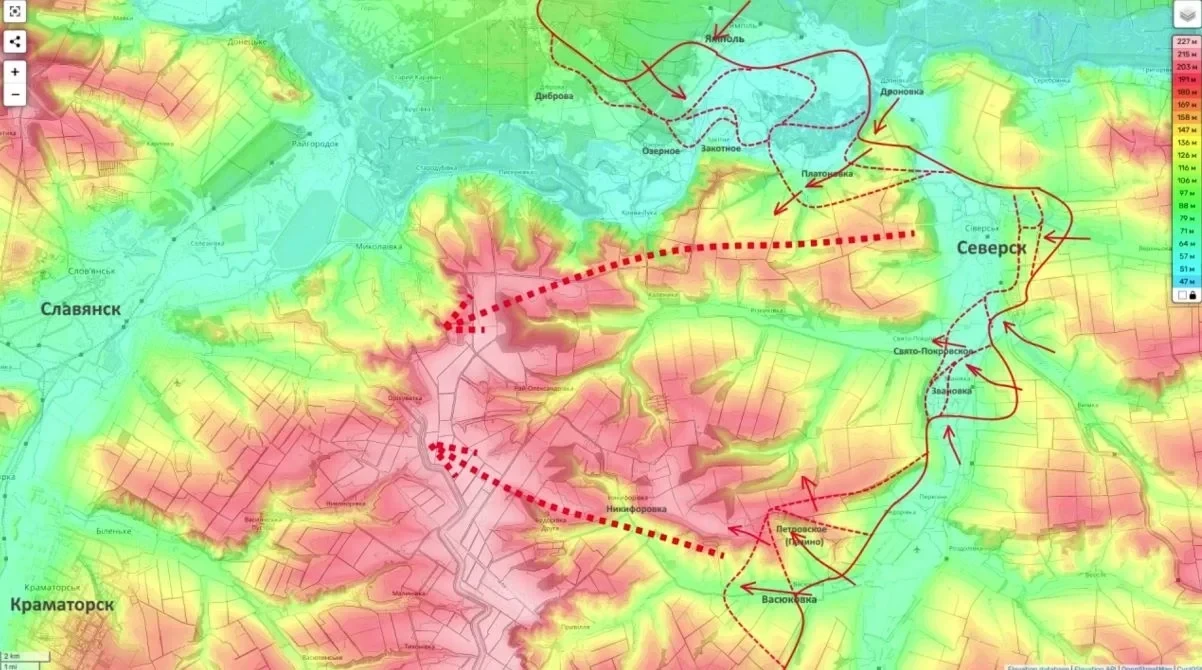 3. Штурмовые действия в районе Свято-Покровского обозначают глубокий охват группировки. По данным радиоперехватов, логистика противника здесь нарушена критически. Северская группировка находится в оперативном окружении, и ее разгром позволит российской 3-й армии начать движение на Славянск.
