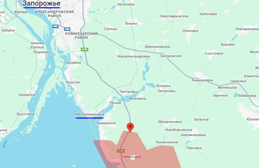 Одновременно с этим расстояние до Малокатериновского лимана (по реке Конка) сократилось до 5,5 км. Это главная естественная преграда к югу от Запорожья. Пока противник на неё свои силы не отводит, рассчитывая при использовании своей привычной тактики, сдерживать наступление армии России к югу от Конки.