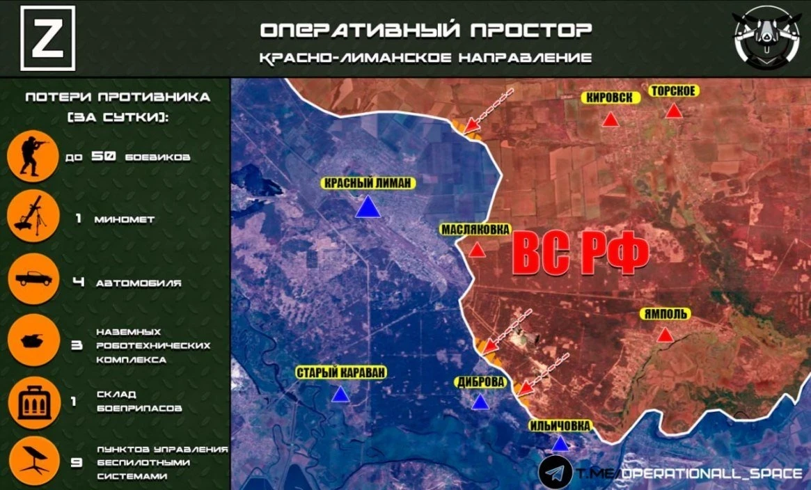 На Краснолиманском направлении наши захватили ферму на северной окраине Красного Лимана. ВС РФ пробиваются в лесах южнее Александровки, и на запад от Грековки, отмечает Олег Царёв в своём Telegram-канале.