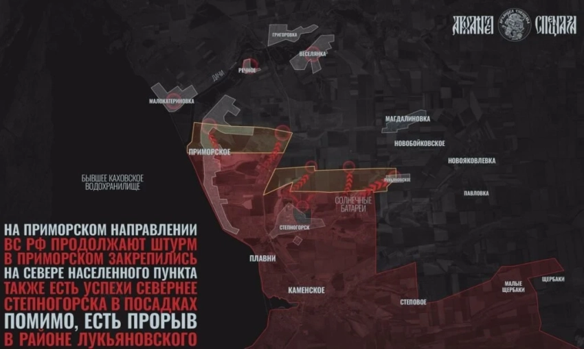 Основные события разворачиваются на Запорожском фронте. В районе Приморского идут ожесточённые бои: украинские подразделения пытаются удержать очередной рубеж обороны и не допустить дальнейшего продвижения ВС РФ. Западнее Степногорска российские войска расширили зону контроля, а также продвинулись вдоль трассы в направлении Веселянки. В районе Лукьяновского продвижение даётся тяжело из-за высокой активности украинских дронов.