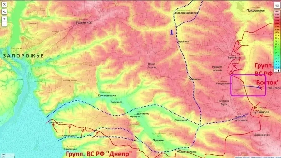 Текущая конфигурация фронта фактически лишает противника пространства для маневра. Российские войска продолжают наступление сразу на нескольких векторах: продолжается мощное давление на позиции врага в районе Павловки, осуществляется продвижение в сторону Новояковлевки, село Лукьяновское перешло под контроль российских сил, тогда как бои за Приморское находятся на завершающей стадии.
