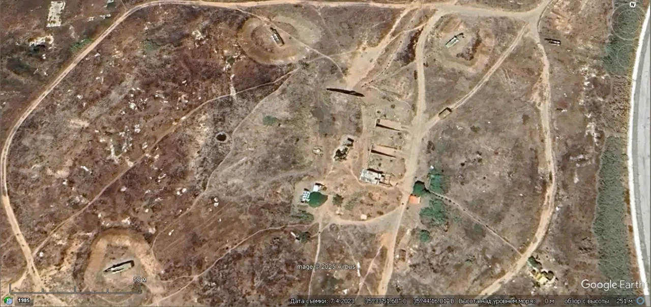 Спутниковый снимок Googlе Eаrth: позиция ЗРК С-125М1 на побережье в 8 км южнее города Банияс. Снимок сделан в феврале 2024 года