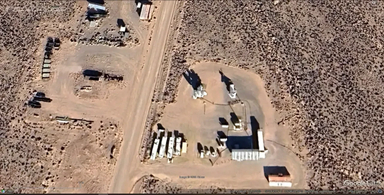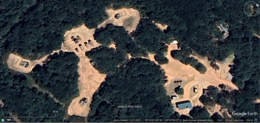 Спутниковый снимок Googlе Eаrth: позиция ЗРК С-125М в 3 км северо-западней населённого пункта Камиара. На позиции имеется только две пусковые установки, но они полностью заряжены. Снимок сделан в феврале 2023 года