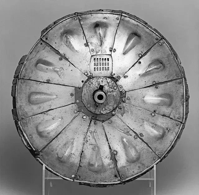 Щит баклер начала XVI в. Англия. Диаметр 36,2 см. Вес 2,27 кг. Метрополитен музей, Нью-Йорк