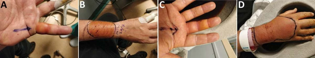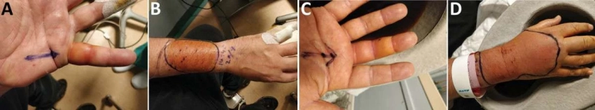Не названный 48-летний британец по неосторожности связался с уличной кошкой, которая несколько раз его укусила. Обычно такие травмы не слишком серьезны, но в данном случае иммунная реакция пострадавшего мужчины оказалась весьма удивительной. Уже через восемь часов после инцидента у него появился сильный отек рук, и тогда мужчина предпочел обратиться в отделение неотложной помощи.