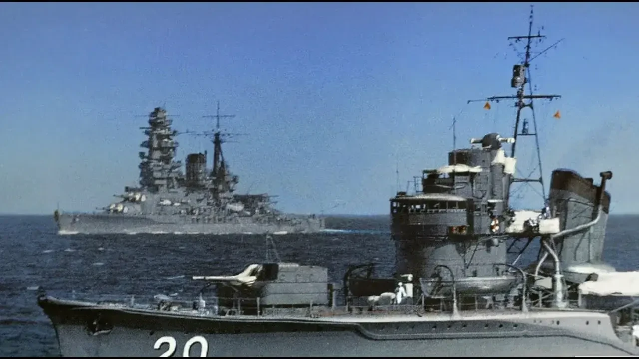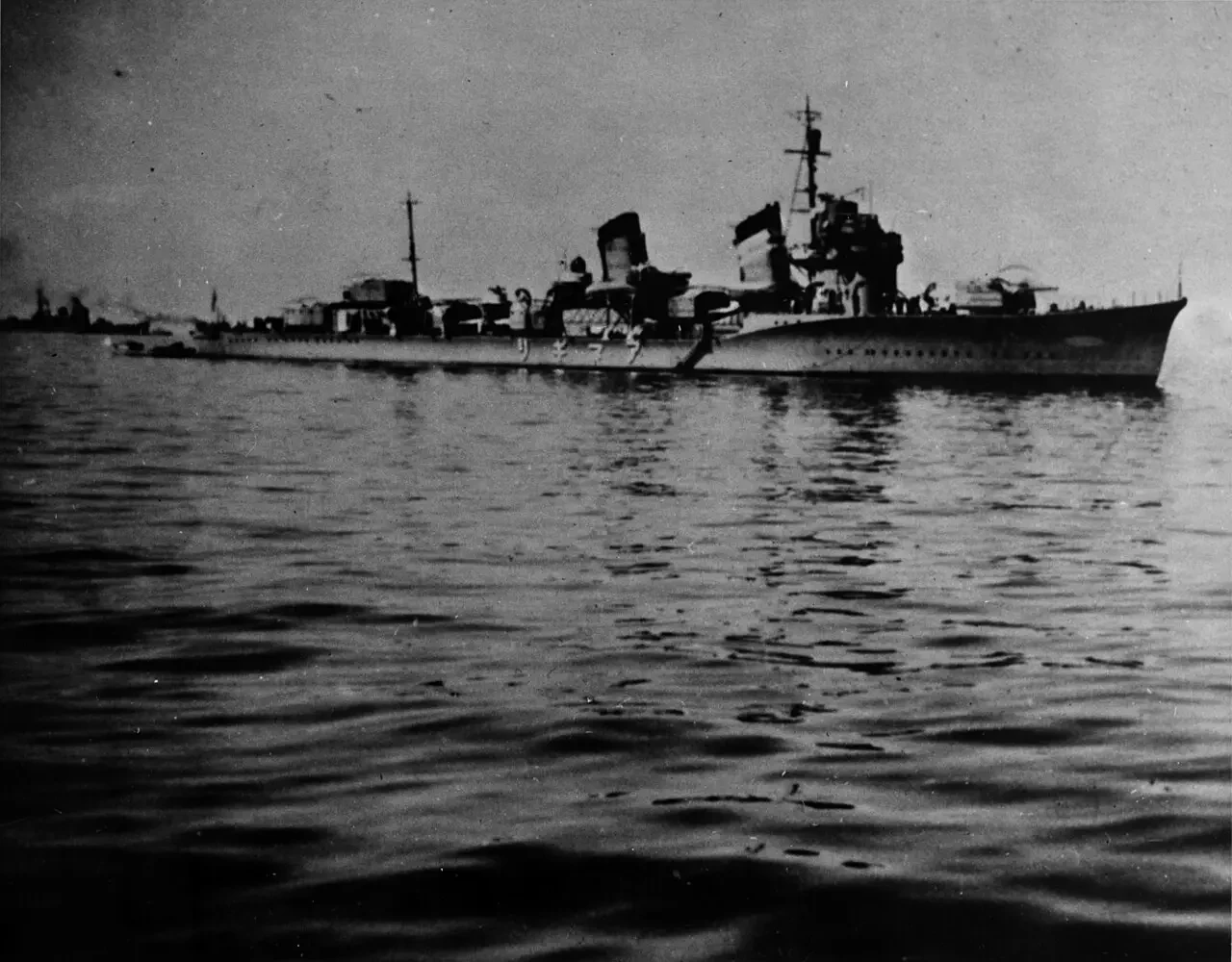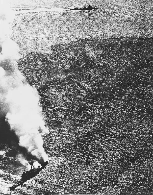 «Усио» маневрирует рядом с тонущим тяжёлым крейсером Нати, 5 ноября 1944 года