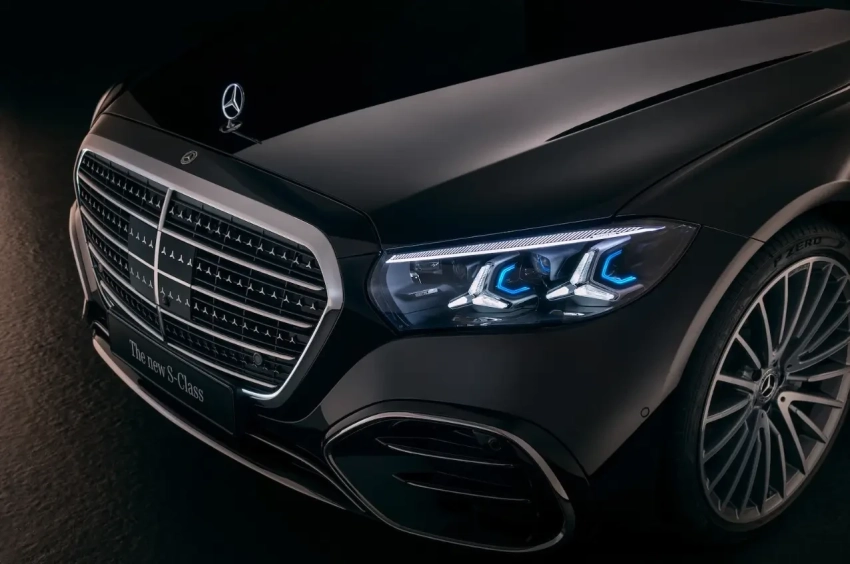 Решётка радиатора S-класса стала заметно крупнее, её площадь увеличили примерно на 20 процентов. К трём горизонтальным хромированным планкам модели 2025 года добавилась ещё одна, что ещё активнее подчеркнуло флагманский статус седана.