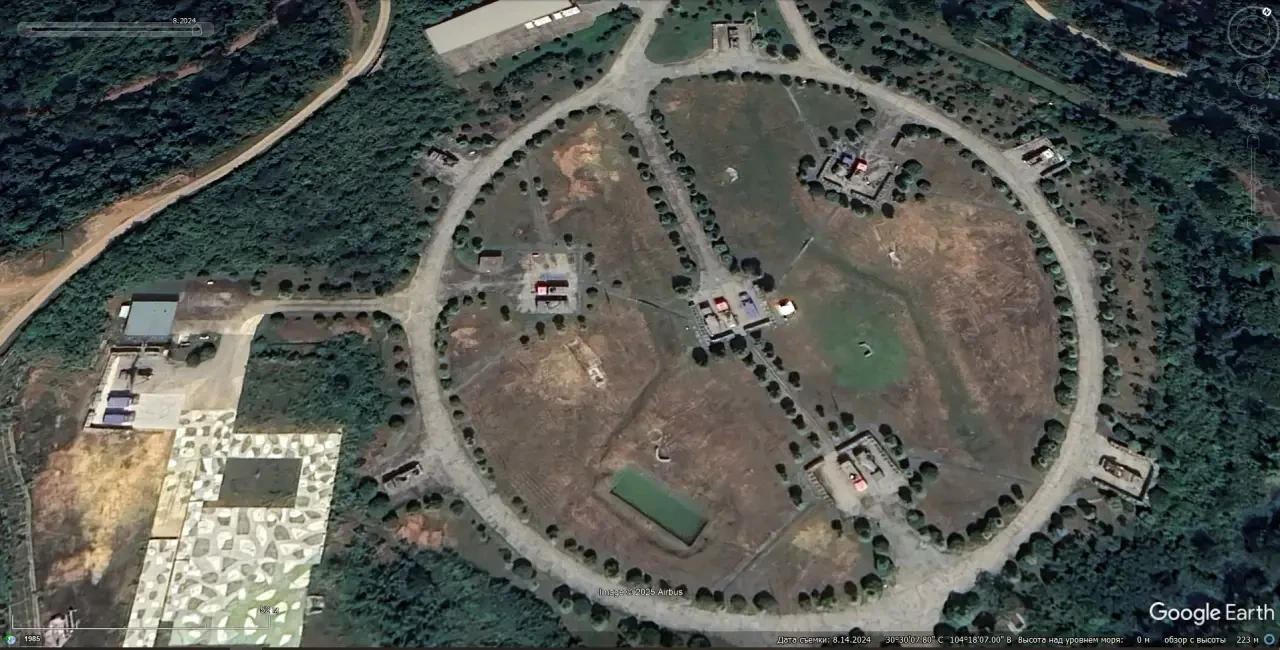 Спутниковый снимок Google Earth: позиция ЗРК HQ-6 в окрестностях города Чэнду. Снимок сделан в августе 2024 года
