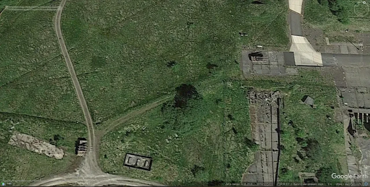 Спутниковый снимок Google Earth: СПУ 2П25 ЗРК «Куб» на британском полигоне Спейддам. Снимок сделан в июне 2018 года