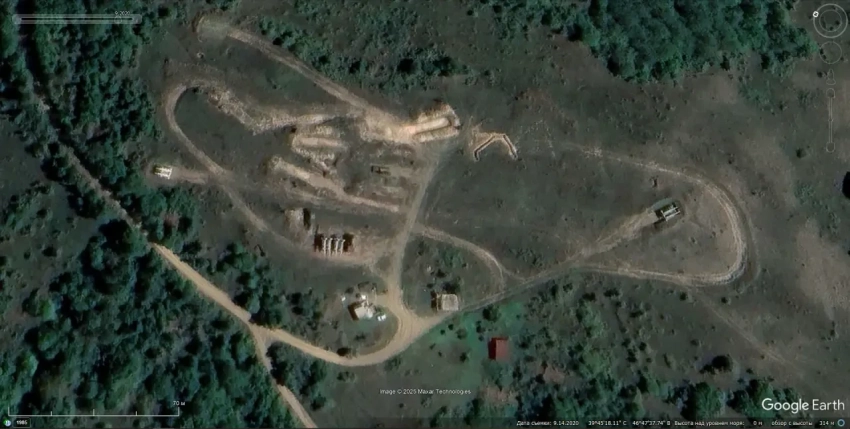 Спутниковый снимок Google Earth: позиция ЗРК «Круг» в 1 км южнее Шушикенда. Снимок сделан 14 сентября 2020 года