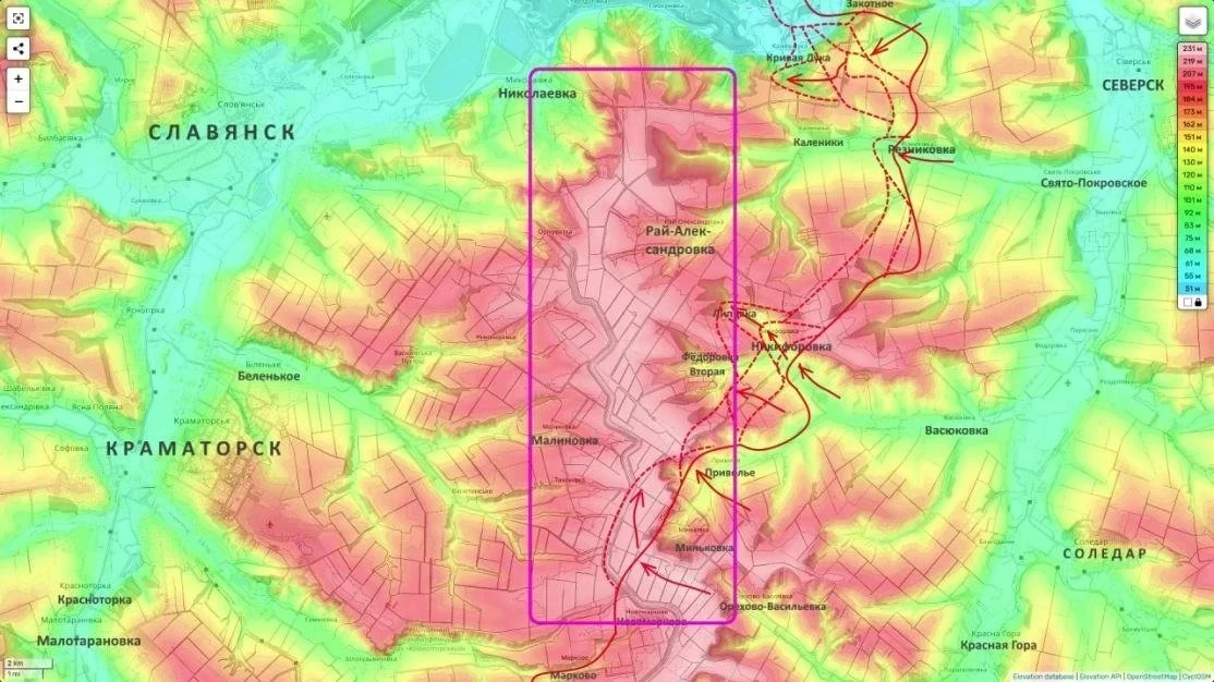 Взятие Рай-Александровки и оседлание водораздельного хребта станет приговором для сил ВСУ, удерживающих Калиновку, Резниковку и Кривую Луку. Мы получаем идеальные позиции для начала прямого наступления на Славянск (до которого останется буквально 10 км) и Краматорск.