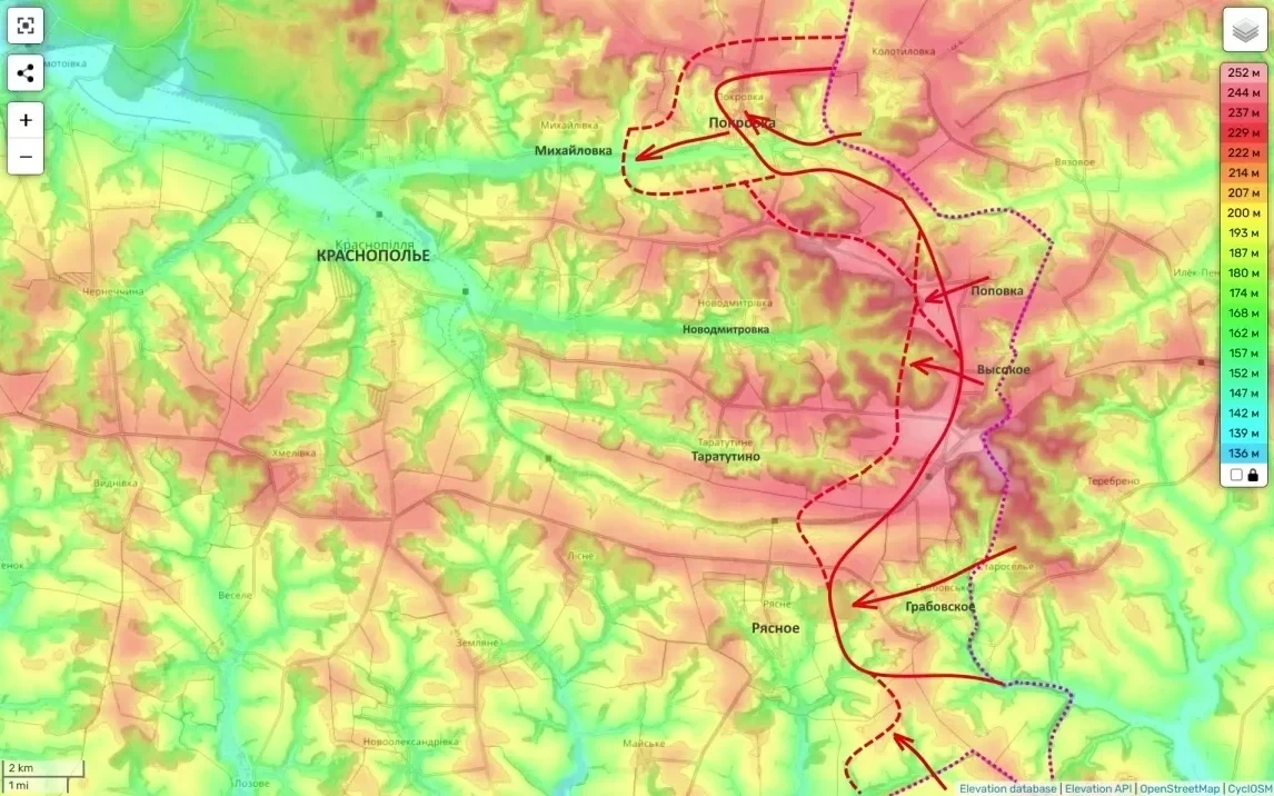 Опираясь на Покровку, ВС РФ расширяют плацдарм вокруг Краснополья, двигаясь на север, запад и юг. Цель очевидна - охват Сум с южного направления. Чтобы купировать эту угрозу, Киеву снова нужны резервы, которых у него уже катастрофически не хватает.