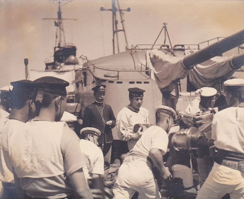 Моряки у кормовых башен «Самидаре» в августе 1938 года