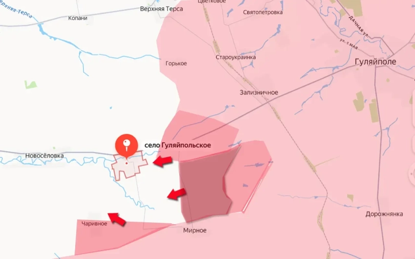 Поступает информация о развитии российскими Вооружёнными силами успеха на востоке Запорожской области. После выхода к восточным окраинам села Гуляйпольское российские войска заняли дополнительно порядка 8 кв. км территории к северо-востоку и северу от Мирного.