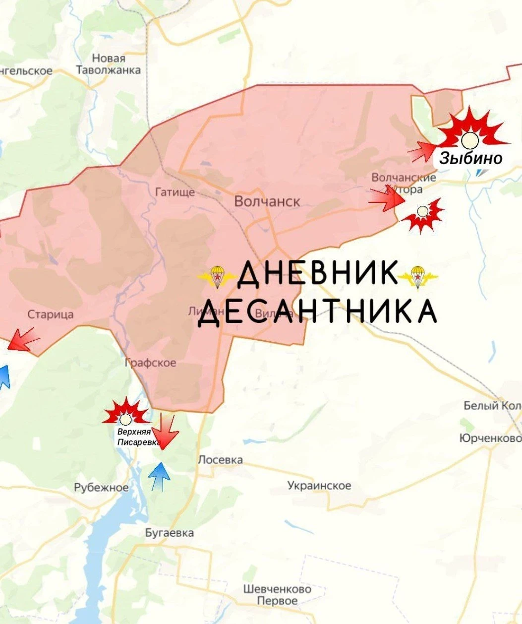 В районе села Зыбино российская разведка вскрыла и точным ударом уничтожила пункт управления БПЛА вместе с персоналом, что облегчило продвижение пехоты. К югу от Старицы и в районе Верхней Писаревки зона контроля ВС РФ расширяется при активной поддержке ВКС. Также пресечена очередная попытка врага форсировать реку Волчья.
