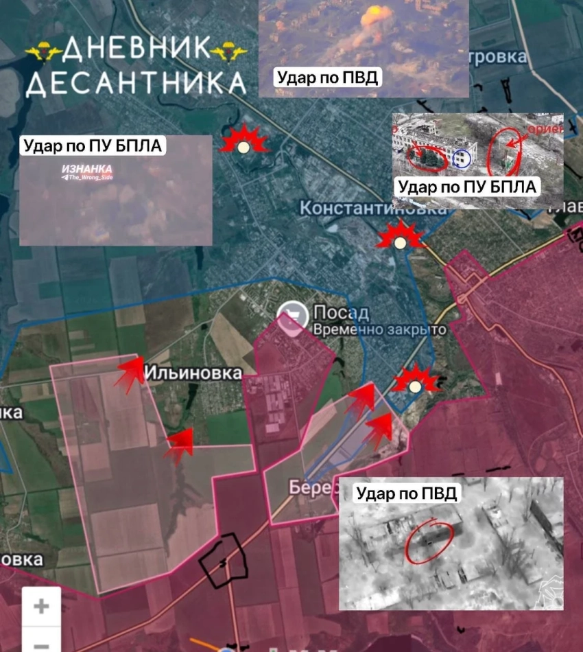 В самой Константиновке идёт процесс уничтожения вражеских пунктов дислокации, огневых точек, точек запуска БПЛА и систем связи. У школы уничтожен командный пункт БПЛА ВСУ и установленные на самой школе выносы. В южной части города ликвидировали пункт дислокации противника с живой силой.