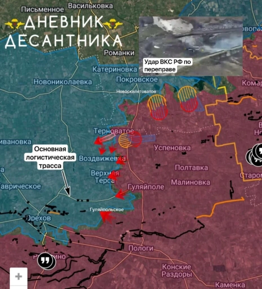 На Гуляйпольском участке тяжёлые бои развернулись на подступах к Гуляйпольскому и Верхней Терсе. Российские штурмовые подразделения предпринимают активные попытки закрепиться на окраинах и развить наступление, преодолевая упорное сопротивление ВСУ.