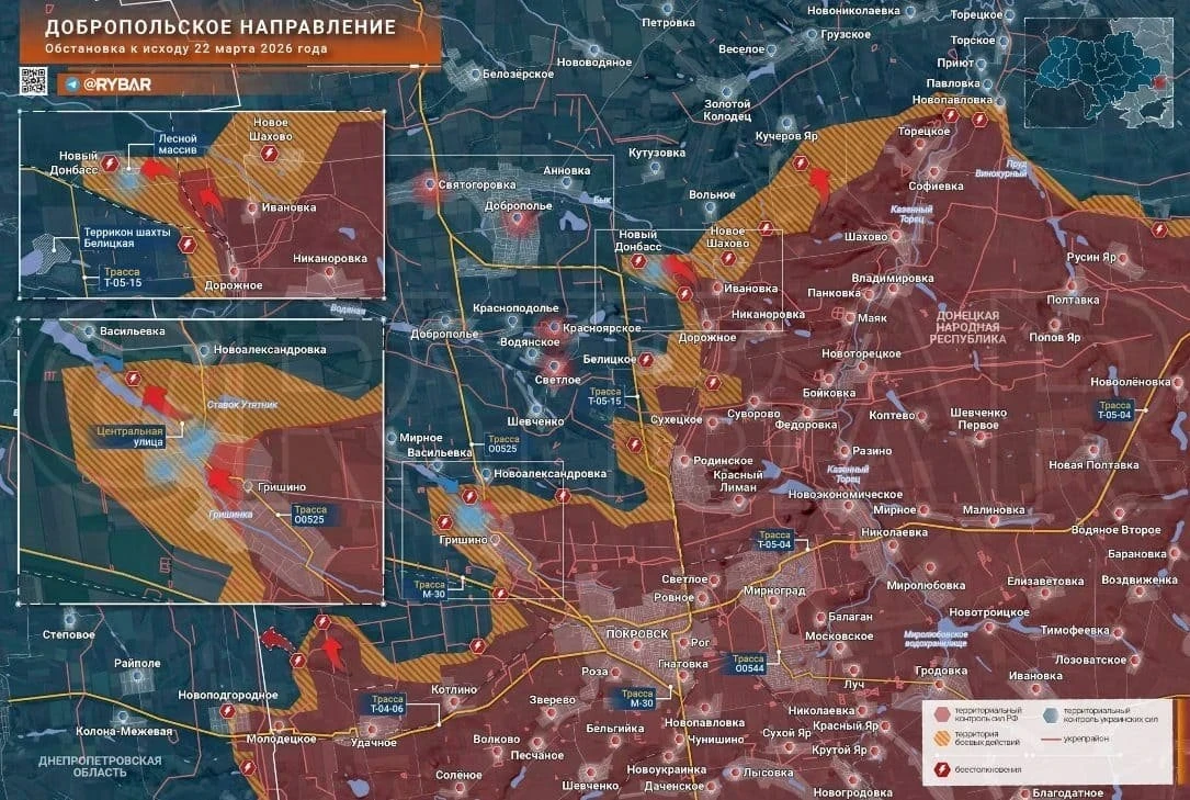 ВС России с тяжёлыми боями продвигаются вперёд в зоне СВО: свежие карты боевых действий на 23.03.2026
