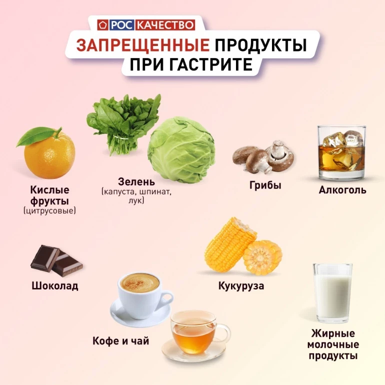 К сожалению, список «запрещёнки» длиннее. Всем понятно, что про алкоголь придётся забыть. Но людям с гастритом также нельзя кислые фоукты, шоколад, некоторую зелень, грибы и даже… кофе и чай. Их можно заменить напитком из цикория и травяными чаями.