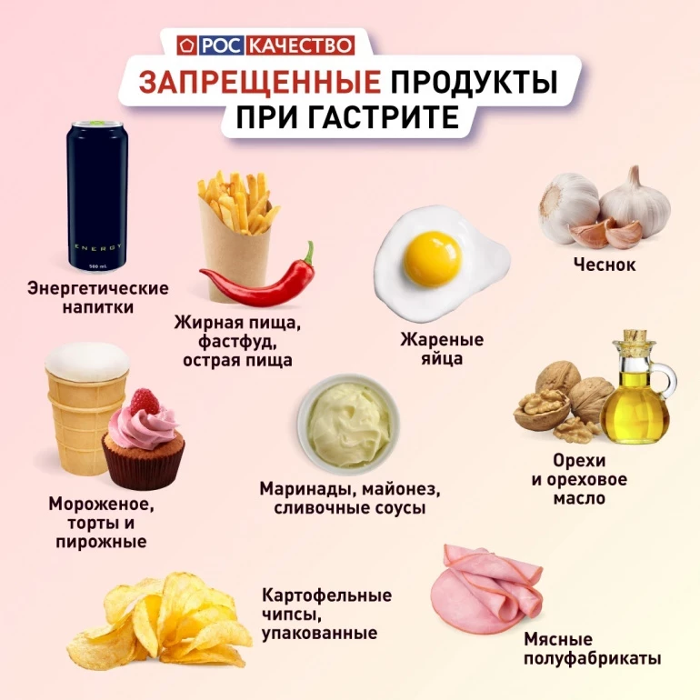 Эксперты перечислили разрешённые и запрещённые продукты при гастрите