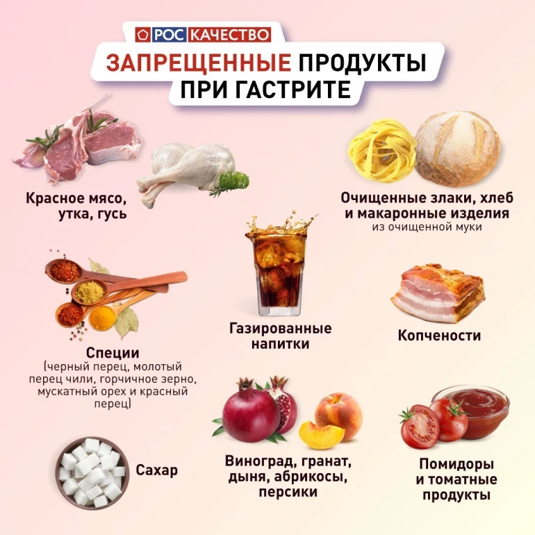 От красного мяса, копчёностей, газировки, всего острого и сладостей тоже придётся отказаться. Более того, запрещены даже некоторые фрукты.