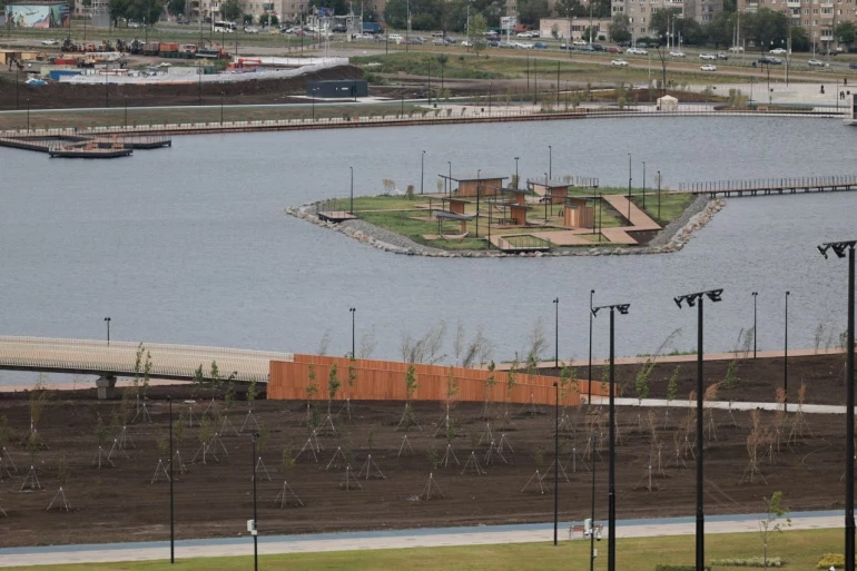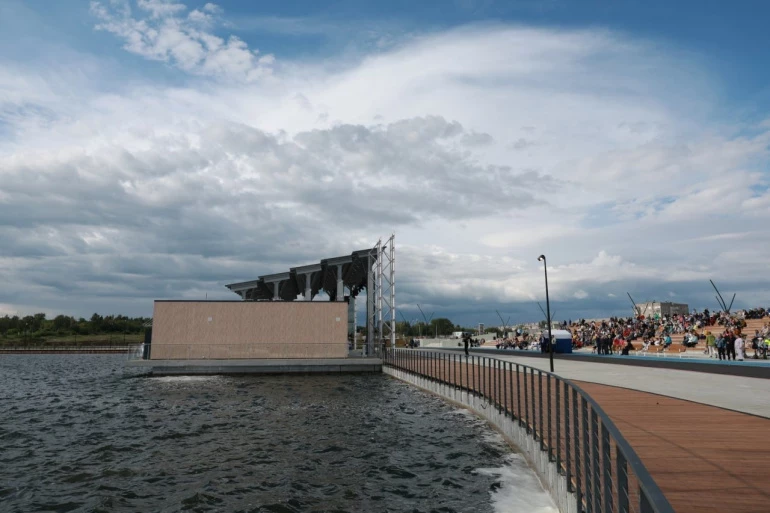 На новом водоёме — пляж и лодочная станция, экологическая тропа, парящая над водной гладью сцена и остров для пикников