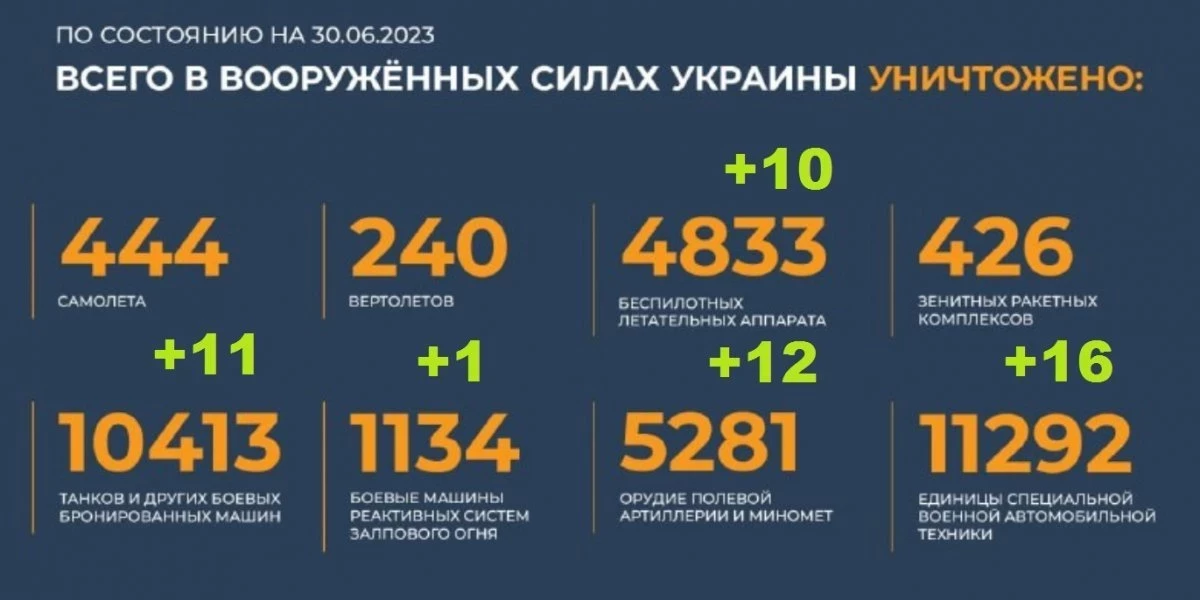 - Доклад официального представителя Минобороны России Игоря Конашенкова по ситуации в зоне проведения спецоперации по состоянию на 30.06.2023 г.