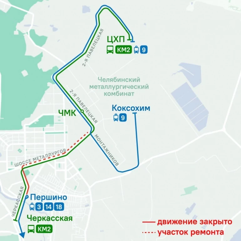 - 9. Коксохим — ЧМК — ЦХП (новый маршрут).