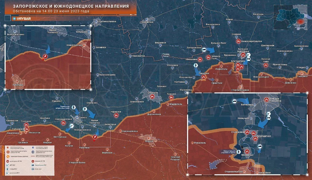 Главные новости » Эксклюзив » Карта боевых действий: Донецко-Запорожское направление обстановка по состоянию на 17.00 23 июня 2023 года