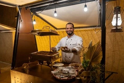 - Во время банкета, посвященного открытию 45-й сессии Комитета всемирного наследия ЮНЕСКО в Эр-Рияде, гостям предлагают блюда традиционной кухни. (PRNewsfoto/Saudi National Commission for Education, Culture and Science)