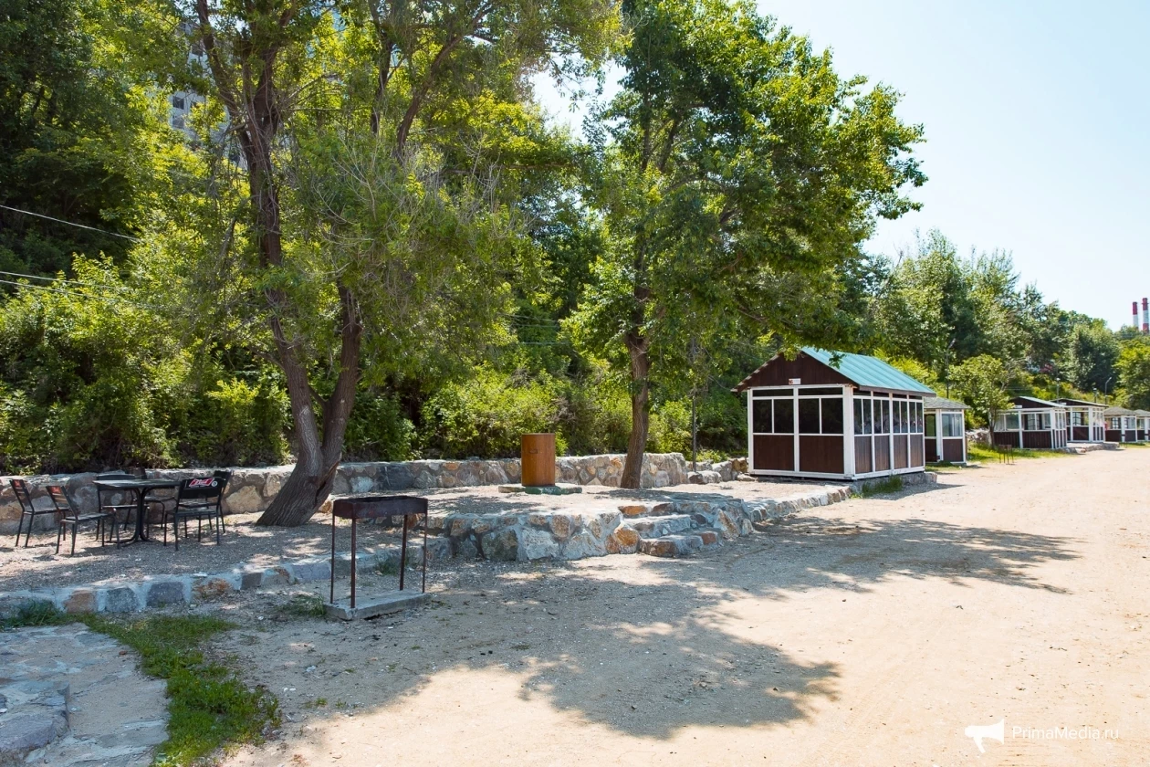 По обе стороны берега установлены бесплатные туалеты. На пляже для полноценного отдыха оборудованы беседки с электричеством и водоснабжением. На территории есть кафе и детская площадка, а прямо у воды установлены лавочки.