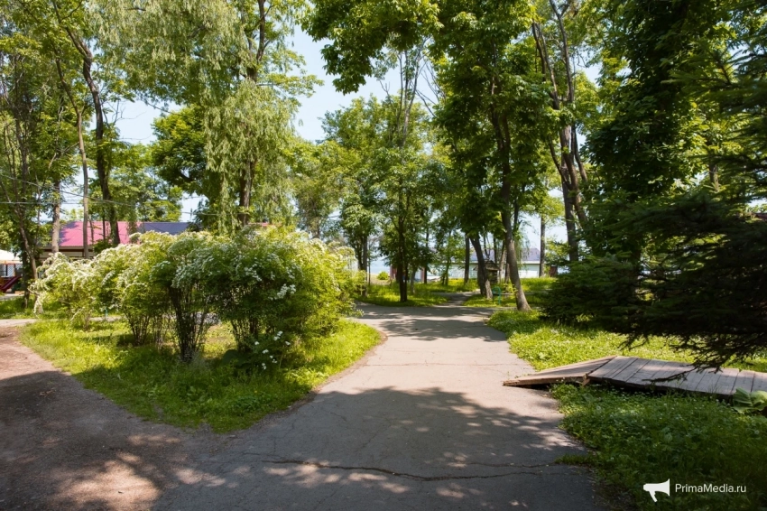 По ровному берегу с мелкими камешками и насыщенной зелёной травкой пролегают деревянные дорожки — идеальное место для прогулок, по словам посетителей. Для любителей активного отдыха есть прокат сапов, чтобы отправиться в увлекательное путешествие по акватории Владивостока.