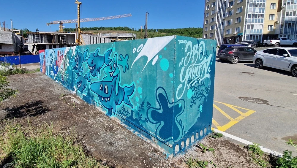 Стартом проекта “ЭкоУлица” стало декорирование на экологическую тематику двух бетонных стен возле домов № 3 и № 15 на улице Сочинской. Эта работа позволила повысить эстетическую привлекательность двух площадок для сбора ТБО. Партнеры проекта — профессиональные художники со 2 по 4 июня мастерски привели стены в порядок.