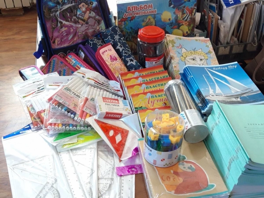 Принадлежности для школы собирались и для детей Донбасса. На деньги, пожертвованные благотворителями, приморское отделение партии изготовило и передало в город Торез 400 школьных рюкзаков для учащихся средних классов и 175 канцелярских наборов для младшеклассников.