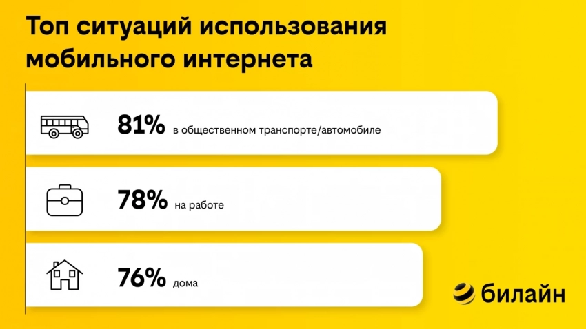 Топ ситуаций использования мобильного интернета. Фото: предоставлено компанией билайн