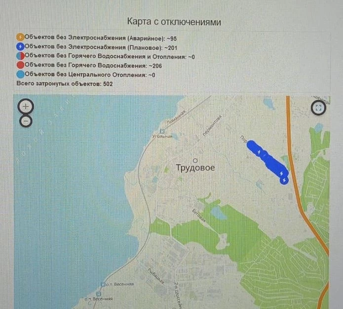 Массовые отключения электроэнергии во Владивостоке. Карта