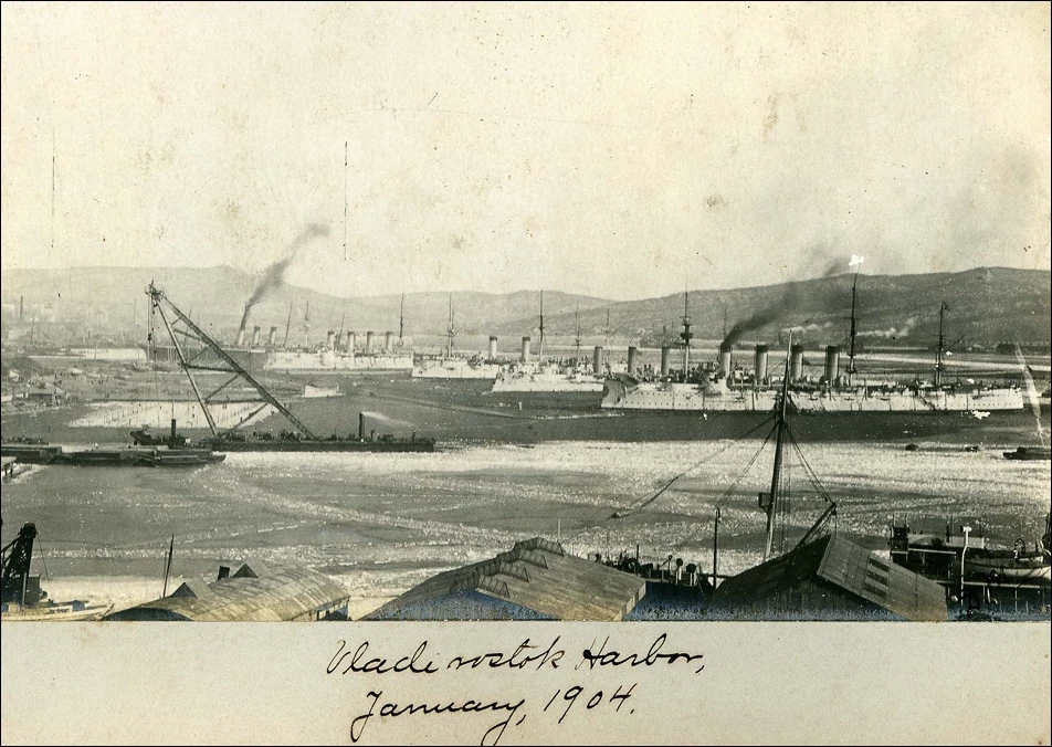 Владивостокский отряд крейсеров в бух. Золотой рог, 1904 г.. Фото: из открытых источников