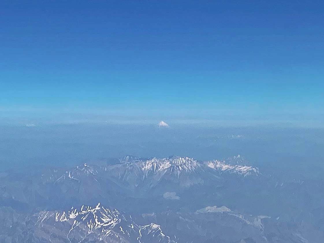 Совершенно неожиданно незадолго до посадки увидел в иллюминатор доминирующую заснеженную вершину — у меня даже тени сомнения не возникло, что это именно Демавенд. А ещё перед посадкой несколько раз нас потрясла турбулентность. Удивительно, что это происходило это при отличной видимости и отсутствии каких-либо признаков нестабильной погоды.