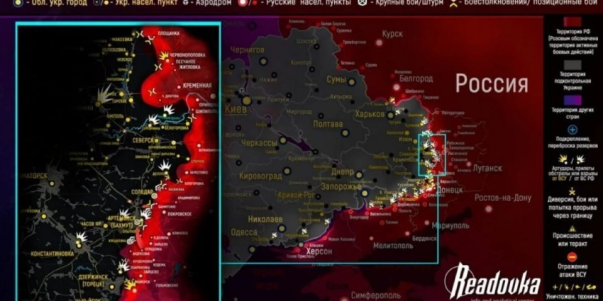 В районе Донецка (Артемовское) яркой новостью стало то, что российские войска продвигаются через линию обороны украинской армии «Соледад» и занимают новые позиции. Эту информацию подтвердил официальный ТГ-канал «музыкантов».карта