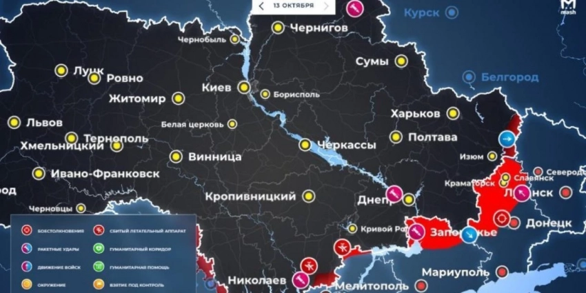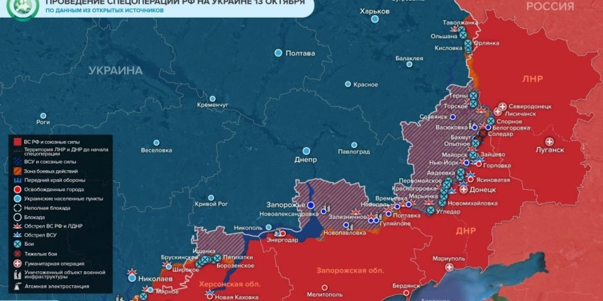 Карта боевых действий на Украине сегодня. Последние новости о ходе военной операции на 14.10.2022 года, обстановка на фронтах за сутки