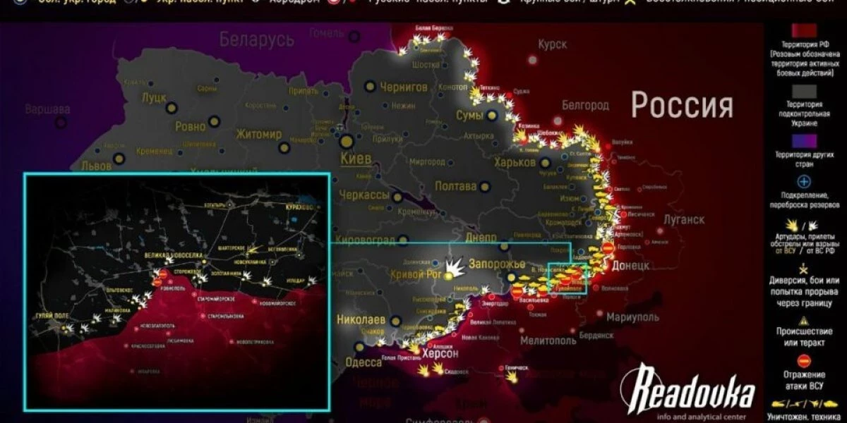 - Начальник пресс-центра группировки войск «Восток» Олег Чехов заявил, что на Южнодонецком направлении при попытке наступления Вооруженные силы Украины потеряли больше половины личного состава.