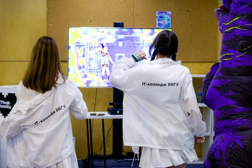 Мероприятие на полях Russky MeetUp & Digital Region наглядно это подтвердило. Отличительная особенность митапа в том, что его готовили студенты IT-направлений. Ребята сами разработали программу с разнообразными активностями, выступили организаторами, модераторами и спикерами площадок. Своим гостям они предложили несколько станций — зону “джаст дэнс”, где можно было потанцевать под весёлую музыку, станции VR (виртуальной реальности), а также интеллектуальный видеоквиз — викторину, на которой участники отвечали на вопросы, связанные с историей колледжа и IT-тематикой. Самые эрудированные и находчивые получили мерч — браслеты, шопперы и стикерпаки, разработанные студентами ВВГУ.