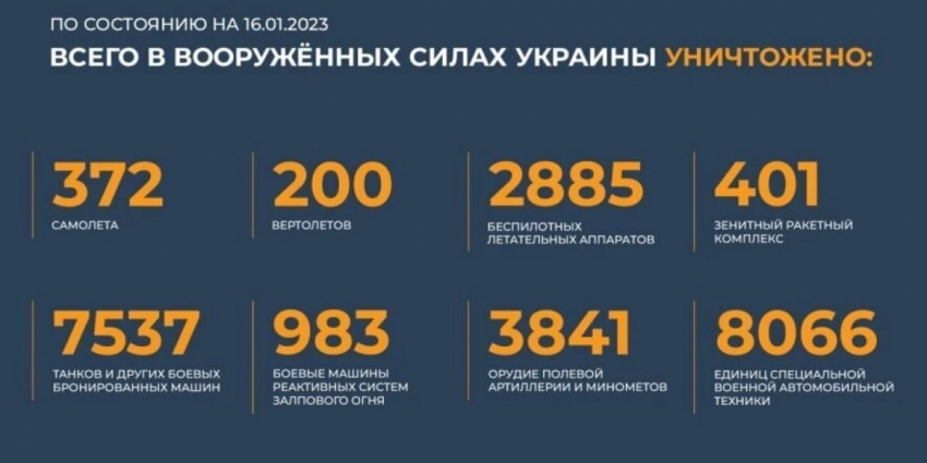 Брифинг Министерства обороны Российской Федерации о ходе проведения специальной военной операции на территории Украины по состоянию на 17 января 2023 года