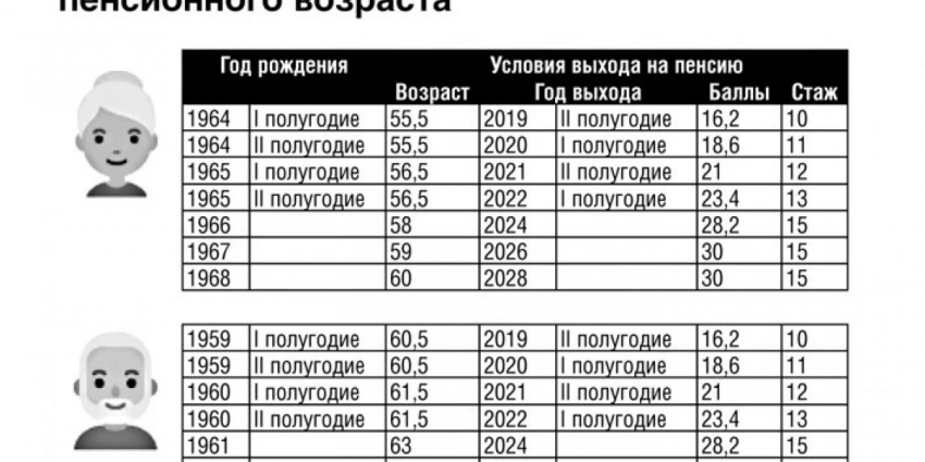 Последними на пенсию вышли в июле прошлого, 2022 года женщины 1965 года рождения и мужчины 1960 года рождения. См. таблицу: